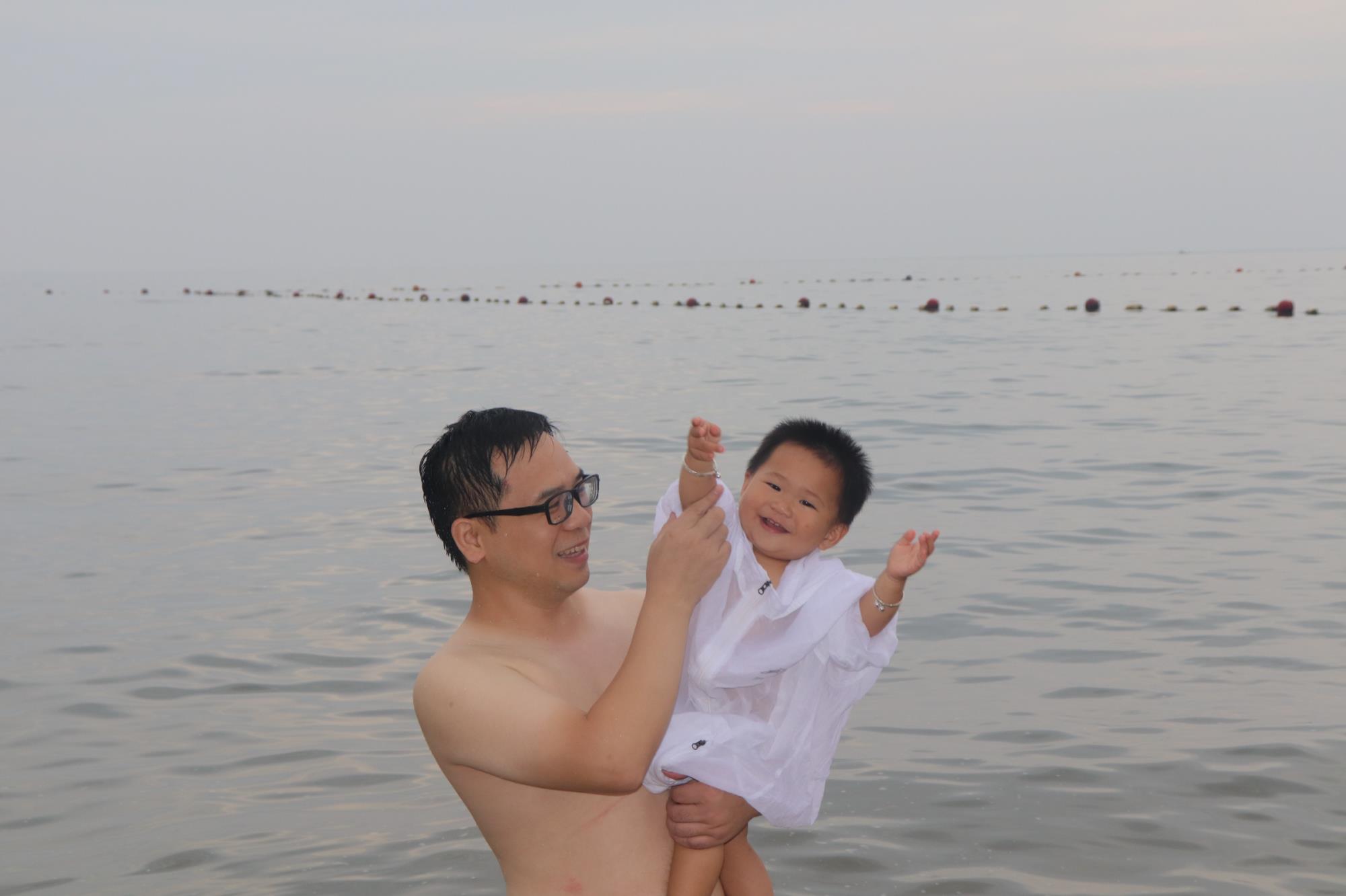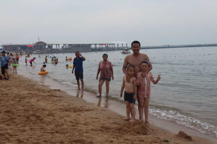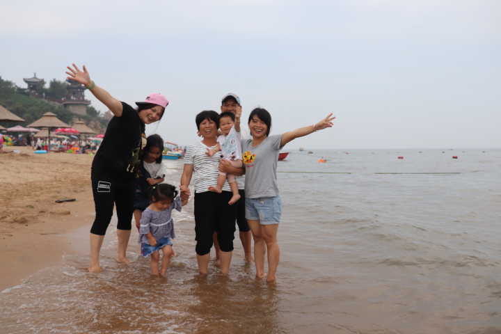 优秀员工家属在海边留念