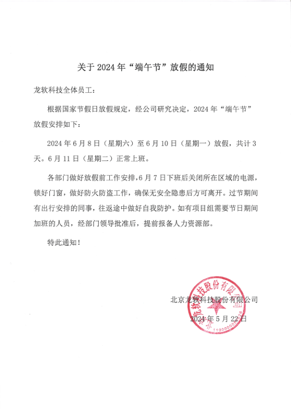 ¹ØÓÚ2024Äê¡°¶ËÎç½Ú¡±·Å¼ÙµÄ֪ͨ