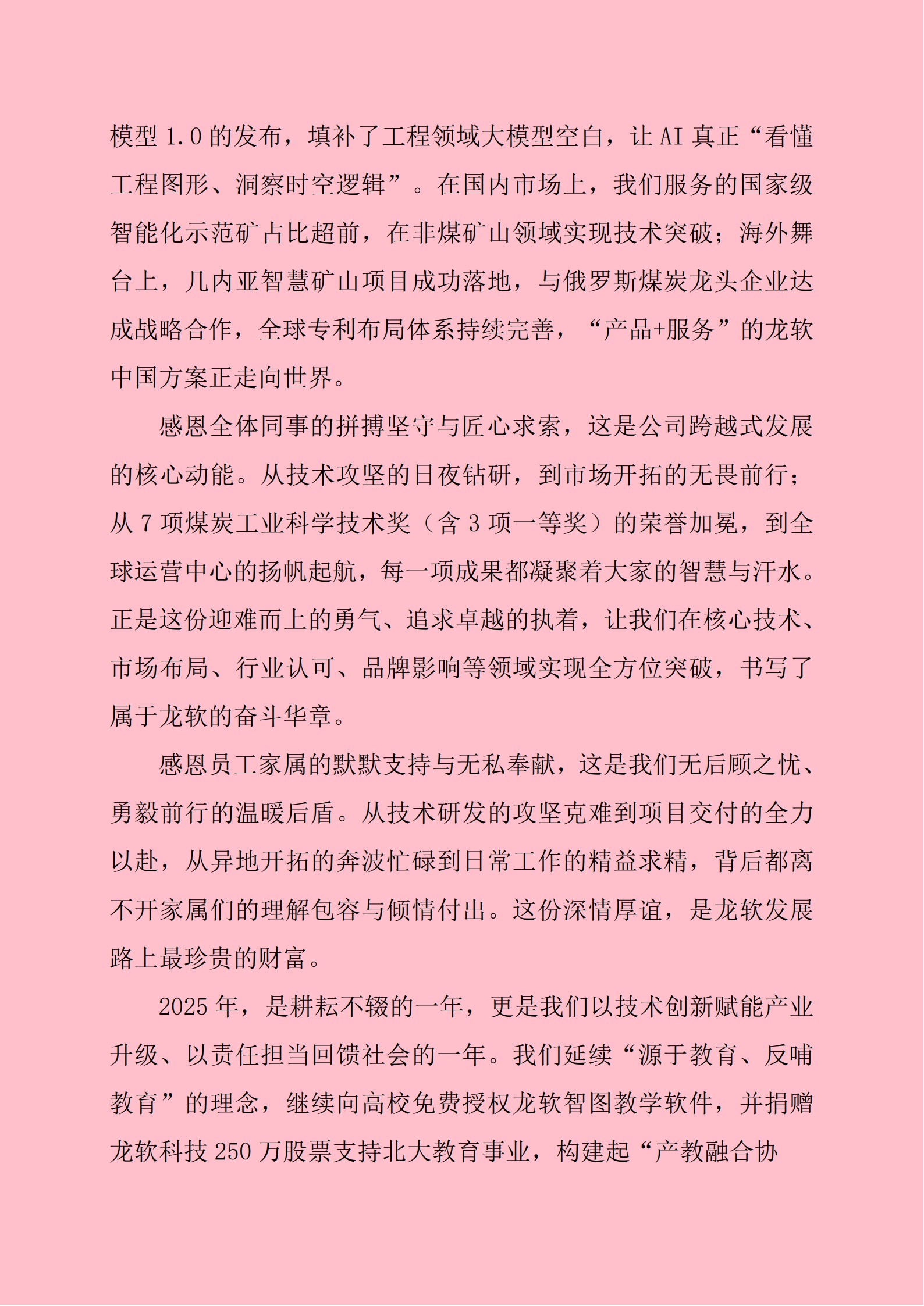 2025Ä꣬ÔÚ“È˹¤ÖÇÄÜ+”Ðж¯Óë“ÉîµØ¾¼Ã”¹ú¼ÒÕ½ÂÔµÄË«ÖØÇý¶¯Ï£¬¹«Ë¾Íê³ÉÁË´Ó“¿óɽÈí¼þ·þÎñÉÌ”µ½“ȫջʽʱ¿ÕÖÇÄܽâ¾ö·½°¸ÌṩÉÌ”µÄ¹Ø¼üÒ»Ô¾¡£¹«Ë¾ÒÔÈ«ÇòÊ׸ö¹¤³ÌÁìÓòʱ¿Õ´óÄ£ÐÍΪ¼¼Êõêµã£¬ÔÚºËÐÄÑз¢¡¢Êг¡ÍØÕ¹¡¢ÐÐÒµÈϿɡ¢Æ·ÅÆ´«²¥¼°Éç»á¼ÛÖµÎå´óά¶ÈʵÏÖÐÍ¬Í»ÆÆ£¬²»½ö¹®¹ÌÁË¿óɽÖÇÄÜ»¯ÁìÓòµÄÁì¾üµØÎ»£¬¸ü¹¹½¨Æð¿çÐÐÒµµÄ“¼¼Êõ£²úÆ·£Éú̬”È«Á´Ìõ¾ºÕùÓÅÊÆ¡£